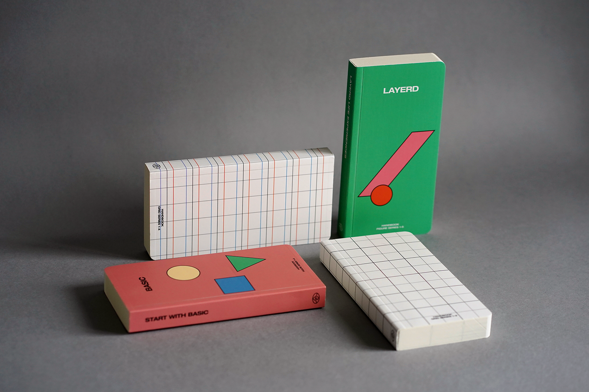Les designs de couverture évoquent l'esthétique des manuels scolaires avec un mélange de formes géométriques, de grilles variées et de combinaisons de couleurs vives, pour une touche délicieusement rétro.